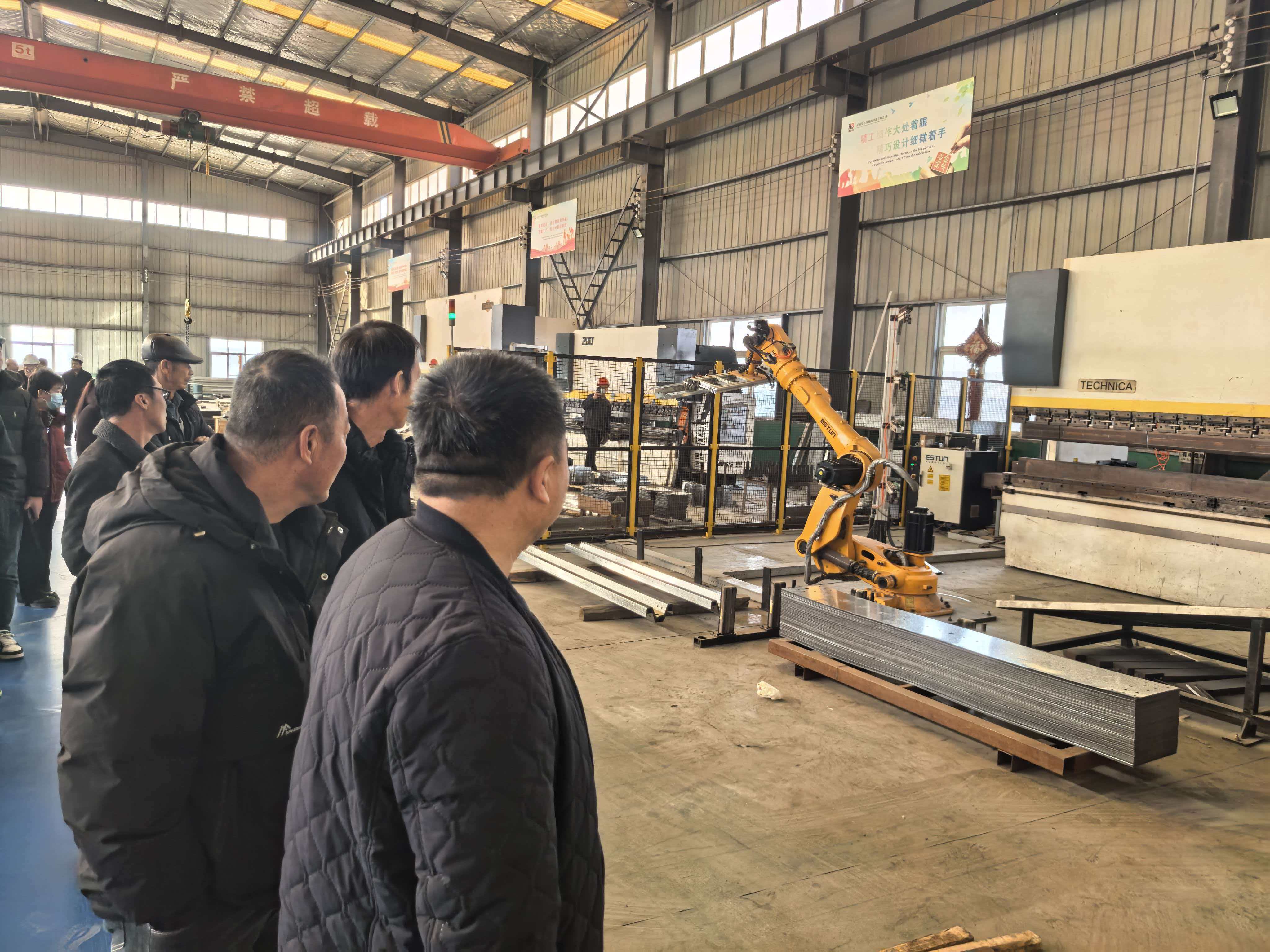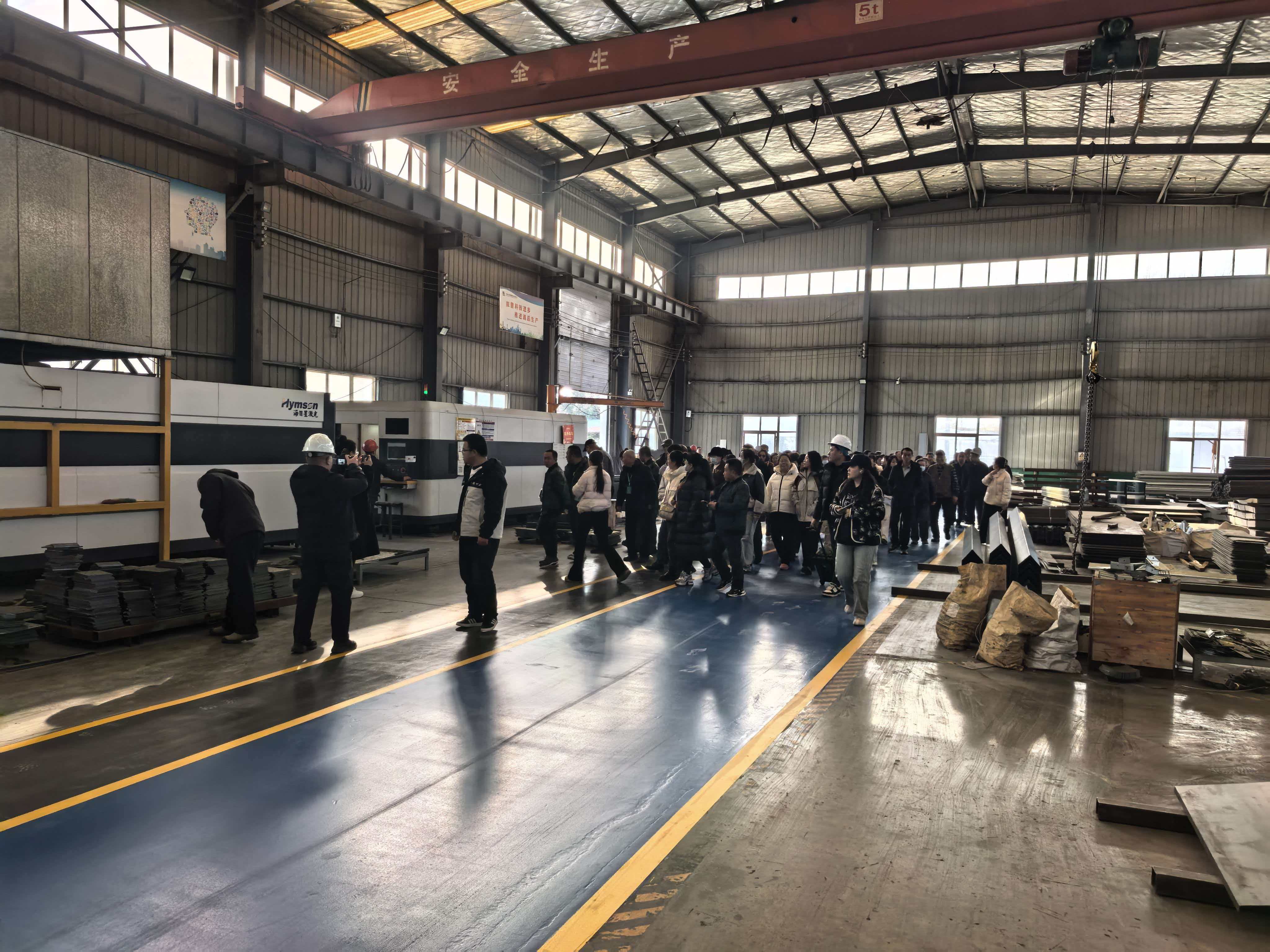 考察团深入公司生产一线,先后参观了智能化生产车间、大型钢板仓烘干塔生产车间以及成品展厅。